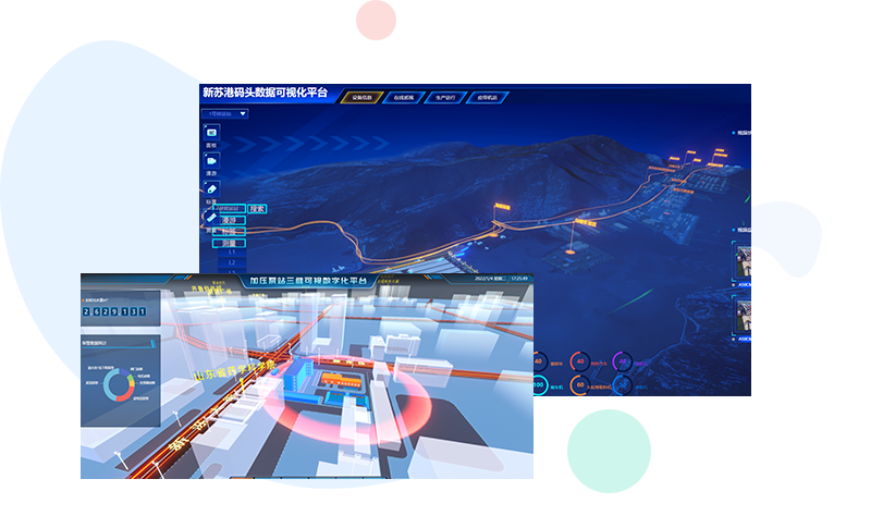 以时空数据场景为数字底座,将数字技术与可视化相结合,通过可视化手段将各行业业务场景进行仿真建模,实现监测、分析和监控,覆盖城市、园区、水务、港口、矿山等领域。